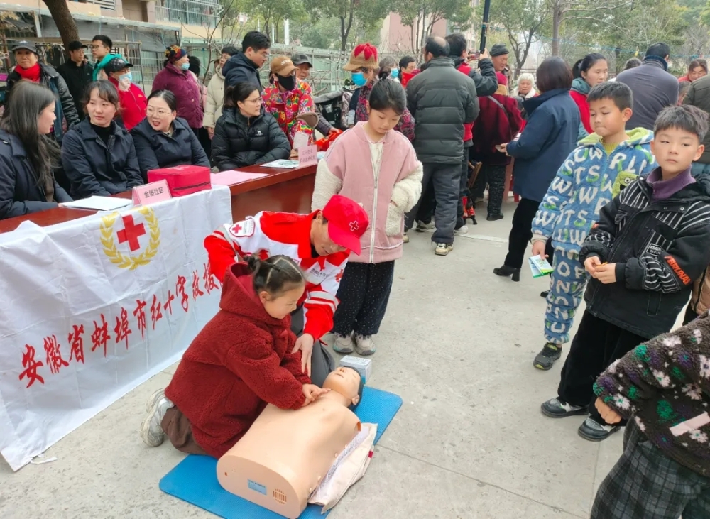 2月5日上午,由蚌埠市红十字救援队组织的“急救知识进社区”公益宣传活动在滨湖花园二期小区广场举行,为社区居民带来了一堂生动实用的生命救护课。